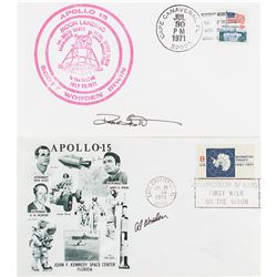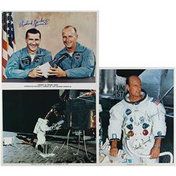 Four items: an official color 10 x 8 NASA lithograph of Irwin saluting the American flag on the lunar surface, signed and inscribed in black felt tip,