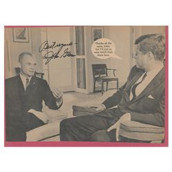 Humorous 10.75 x 7.75 newspaper photo of Glenn sitting with President John F. Kennedy (with a cartoon speech bubble saying, "Thanks all the sam...