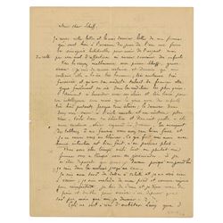 Charming original fountain pen sketch of a person in profile accomplished by Morandi on an off-white 6.25 x 8.25 album page, filled in with text by Mo