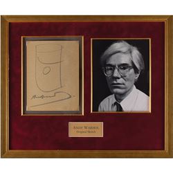 Highly desirable original signed felt tip sketch of a Campbell's soup can accomplished by Warhol on a light brown 7 x 9.25 sheet of cardboard, n...