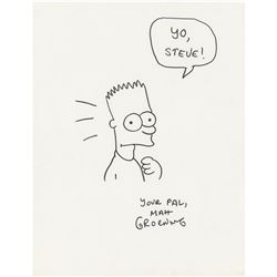 Original felt tip sketch of Bart Simpson accomplished by Groening on an off-white 9 x 12 sheet, inscribed within a speech bubble, "Yo, Steve!,&...