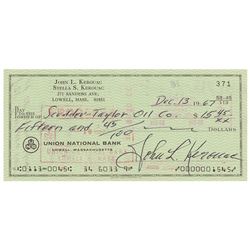Personal check, 6 x 2.75, filled out and signed by Kerouac, "John L. Kerouac," payable to Scudder-Taylor Oil Co. for $15.45, December 13, ...