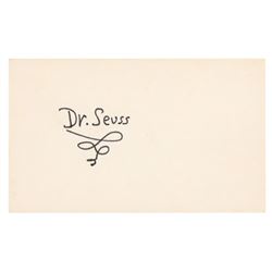 Bold felt tip signature, "Dr. Seuss,” on an off-white 5 x 3 card. In fine condition. Originally obtained by in-person specialist Mike Weh...