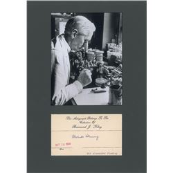 Ink signature, "Alexander Fleming,” on an off-white 4.75 x 2.75 autograph card belonging to Bernard J. Klug, stamp-dated October 18, 1954. Matt...