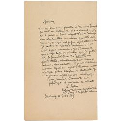 ALS in French, signed "L. Pasteur," one page, 5 x 8.25, February 11, 1849. Letter to a fellow scientist, in full (translated): "You w...