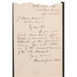 Exceptional ALS, one page, 5.25 x 7.5, black-bordered letterhead, September 22, 1881. Addressed to the Executive Mansion, a letter to J. Stanley Brown