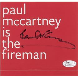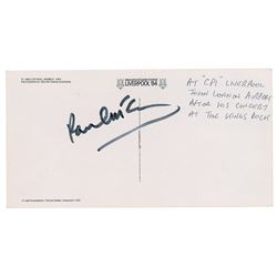 Crisp ballpoint signature, "Paul McCartney (Beatles),” on a light green 5.25 x 3.25 album page bearing an affixed image of the Beatles bassist....