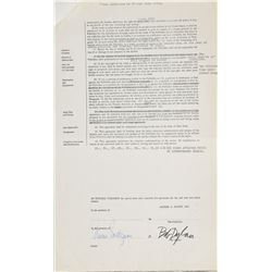 DS, two pages, 8.5 x 14, March 1972. Contract between Dylan and Alfred A. Knoff, Inc., in which the former grants the publisher exclusive right to pri