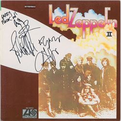 Led Zeppelin II album signed and inscribed on the front cover in black felt tip, "Garry, Rock on! Jimmy Page," "To Gary, Robert Plant...