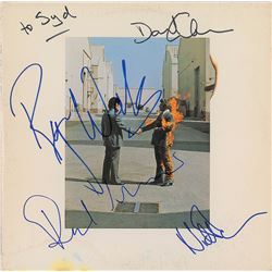Wish You Were Here album signed and inscribed on the front cover in black felt tip, "To Syd, David Gilmour," and in blue felt tip, "R...