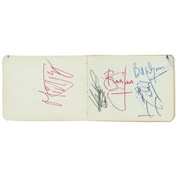 Vintage circa 1963 autograph book, 4.25 x 3.25, signed inside on adjacent pages in red ballpoint, "Mick Jagger" and "Brian Jones,&quo...