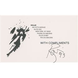 Ballpoint signature of David Bowie, who adds the year, "93," on a white 5.25 x 3.25 Isolar compliments card. In very fine condition. Isola...