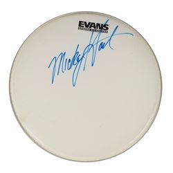 Off-white coated Evans Genera G1 drum head, 12.5? in diameter, signed in blue felt tip by Hart. In fine condition. Originally obtained by in-person sp