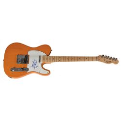 Blonde-bodied Affinity series Fender Squier telecaster electric guitar, serial No. CY41124106, signed on the white pickguard in blue felt tip, "...