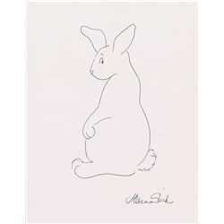 Original ink sketch of a large white rabbit accomplished by Slick on a white 8.5 x 11 cardstock sheet, signed below in black ink. In very fine conditi