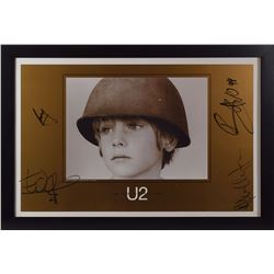 Color 28.5 x 18.5 lithograph depicting the front cover to U2’s The Best of 1980–1990 compilation album, prominently signed in the gold border in black