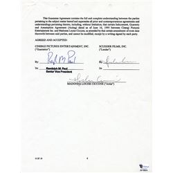 DS, signed “Madonna Ciccone,” four pages, 8.5 x 11, June 16, 1995. Inducement, Guaranty and Assumption agreement between Madonna, Cinergi Pictures Ent