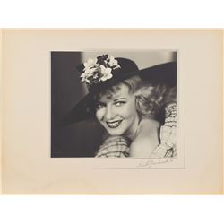 Vintage matte-finish 11 x 9.5 Bachrach portrait of Ginger Rogers, affixed to the original 19.75 x 14.75 studio mount, signed below in pencil by the ph