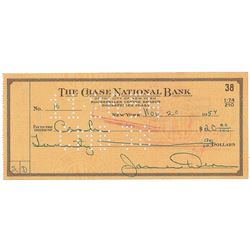 The Chase National Bank check, 6.25 x 2.75, filled out and signed by Dean, payable to Cash for $20, November 20, 1954. In fine condition. After a stri