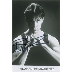 Uncommon glossy 4.75 x 7 publicity photo of Brandon Lee for the 1992 film rapid Fire, signed in black felt tip. In fine condition.