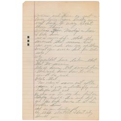 Rare pencil notations written entirely in the hand of Marilyn Monroe, unsigned, one page, lightly lined, 8 x 12.5, no date but circa 1956, seldom-seen
