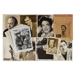 Collection of more than 180 items, consisting primarily of photos ranging in size from 3 x 5 to 8 x 10, each signed by a notable actor, actress, or en