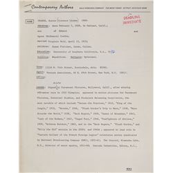 Interesting packet of biographical information related to a project between Crabbe and Contemporary Authors, consisting of seven total pages, each 8.5