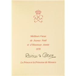 Christmas card from 1978 bearing an image of a painting of Kelly on the front, measuring 11.25 x 7.75 open, signed inside below a preprinted French se