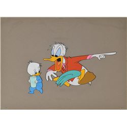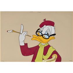 (Walt Disney Studios, circa 1950s) Original production cel featuring Donald Duck as a movie director from a Disney cartoon, showing him wearing a bere