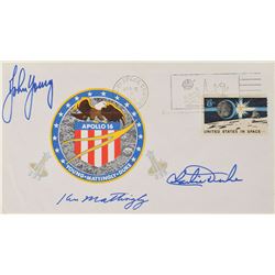 Scarce Apollo 16 ‘Type 1’ insurance cover with a cachet of the mission insignia and two sets of astronaut wings, bearing an April 16, 1972, Kennedy Sp
