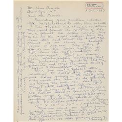 American astronomer (1906–1997) best known for discovering Pluto in 1930. ALS signed “Clyde W. Tombaugh,” 8.5 x 11, October 3, 1984. Letter to Chris P
