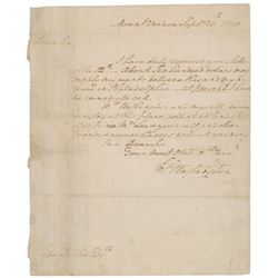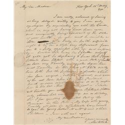 ALS signed “Alex White,” one page, 7.5 x 9.75, May 13, 1790. In full: "I am really ashamed of having so long delayed writing to you, I can only...
