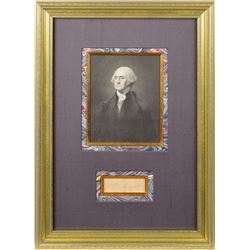 Extremely desirable ink signature, "Go: Washington,” on an off-white 3.5 x 1 slip. Impressively cloth-matted and framed with an engraved portra...