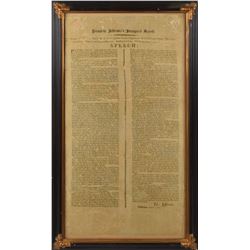 Rare broadside on silk entitled “President Jefferson's Inaugural Speech,” 12 x 22, printed by True & Parks of Boston in 1805. Stitched at ed...