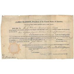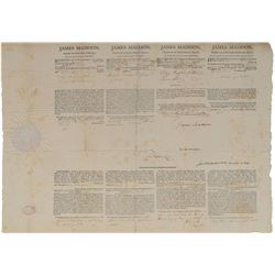 Partly-printed DS, signed "James Madison" as president and "Jas. Monroe" as secretary of state, one page, 21 x 16.5, January 23,...