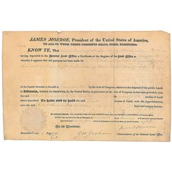 Partly-printed vellum DS, signed “James Monroe" as president and "John Quincy Adams" as secretary of state, one page, 10 x 14.5, May ...
