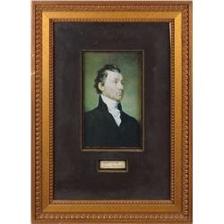 Partly-printed vellum DS as president, signed “J. Q. Adams,” one page, 15.25 x 9.5, July 30, 1827. President Adams grants Robert Miller a tract of lan