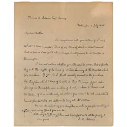 ALS as president signed “J. Q. Adams,” one page, 8 x 10, July 2, 1825. Letter to his brother Thomas Boylston Adams, in full: "In compliance wit...