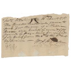 ADS, signed “Wm. H. Harrison,” one page, 7.25 x 4.5, January 15, 1796. Requisition order issued at Fort Washington, in part: "The Quarter Maste...