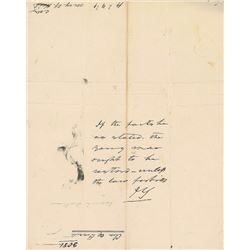 ANS as president signed “J. T.,” one page, 7.75 x 9.75, May 24, 1844. Brief note penned on the reverse of a letter addressed to Tyler by New York Cong
