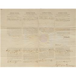 Scarce partly-printed DS as president, signed “Z. Taylor,” one page, 21 x 16.5, December 20, 1849. Four-language ship's papers issued to "E...