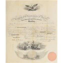 Partly-printed DS, one page, 8.5 x 10.75, January 5, 1867. President Johnson authorizes and directs the secretary of state to "affix the Seal o...