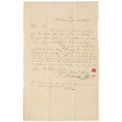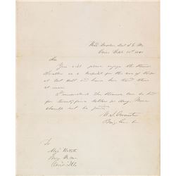 ALS, one page, 8.5 x 13, April 1, 1833. Letter to Alpheus Bigelow, in part: "The inclosed affidavit of John J. Roberts has been forwarded to th...