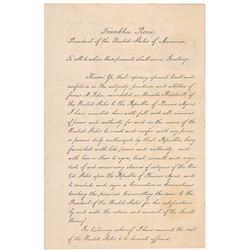Attractive manuscript DS as president, one page both sides, 11 x 16.5, July 5, 1854. President Pierce appoints James A. Peden as the "Minister ...
