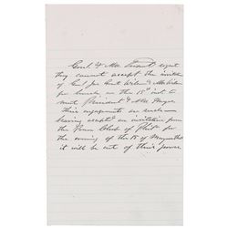 Third-person ALS, signed within the text, “Genl. & Mrs. Grant,” one page, 5 x 8, no date but postmarked August 4, 1884. Letter to General James ...