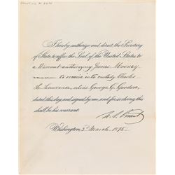 Partly-printed DS as president, one page, 7.75 x 10, March 3, 1875. President Grant authorizes and directs "the Secretary of State to affix the...