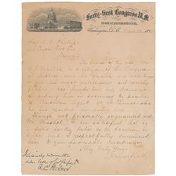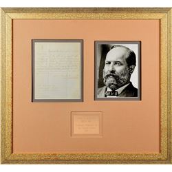 ALS signed “J. A. Garfield,” one page, 7.75 x 10, Forty-First Congress U.S. letterhead, September 12, 1874. Letter to Hon. A. C. Phillips, U. S. Consu