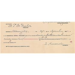 Self-contained partial partly-printed DS, signed “T. Roosevelt,” one page, 8 x 3.5, September 29, 1900. Document by which Roosevelt, as governor of Ne