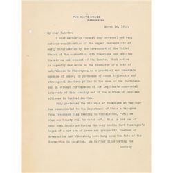 TLS as president signed “Wm. H. Taft,” eight pages, 8 x 10.5, White House letterhead, March 14, 1912. Lengthy letter to Senator William P. Dillingham