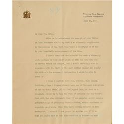 TLS, two pages, 7.75 x 9.75, State of New Jersey, Executive Department letterhead, June 28, 1911. Letter to R. T. Hale, in part: "I am sincerel...
